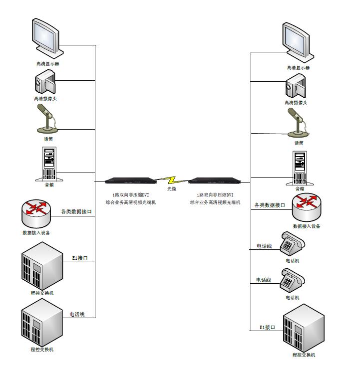 1個光接口(光口速率10G,FC或SFP(LC)接口);2路DVI接口(1路爲DVI輸入,1路爲DVI輸出); 2路音頻接口(3.5MM或蓮花頭或卡侬頭,1路爲音頻輸入,1路爲音頻輸出);2路百兆網絡接口(RJ45);16路電話磁石等業務接口(RJ45) |